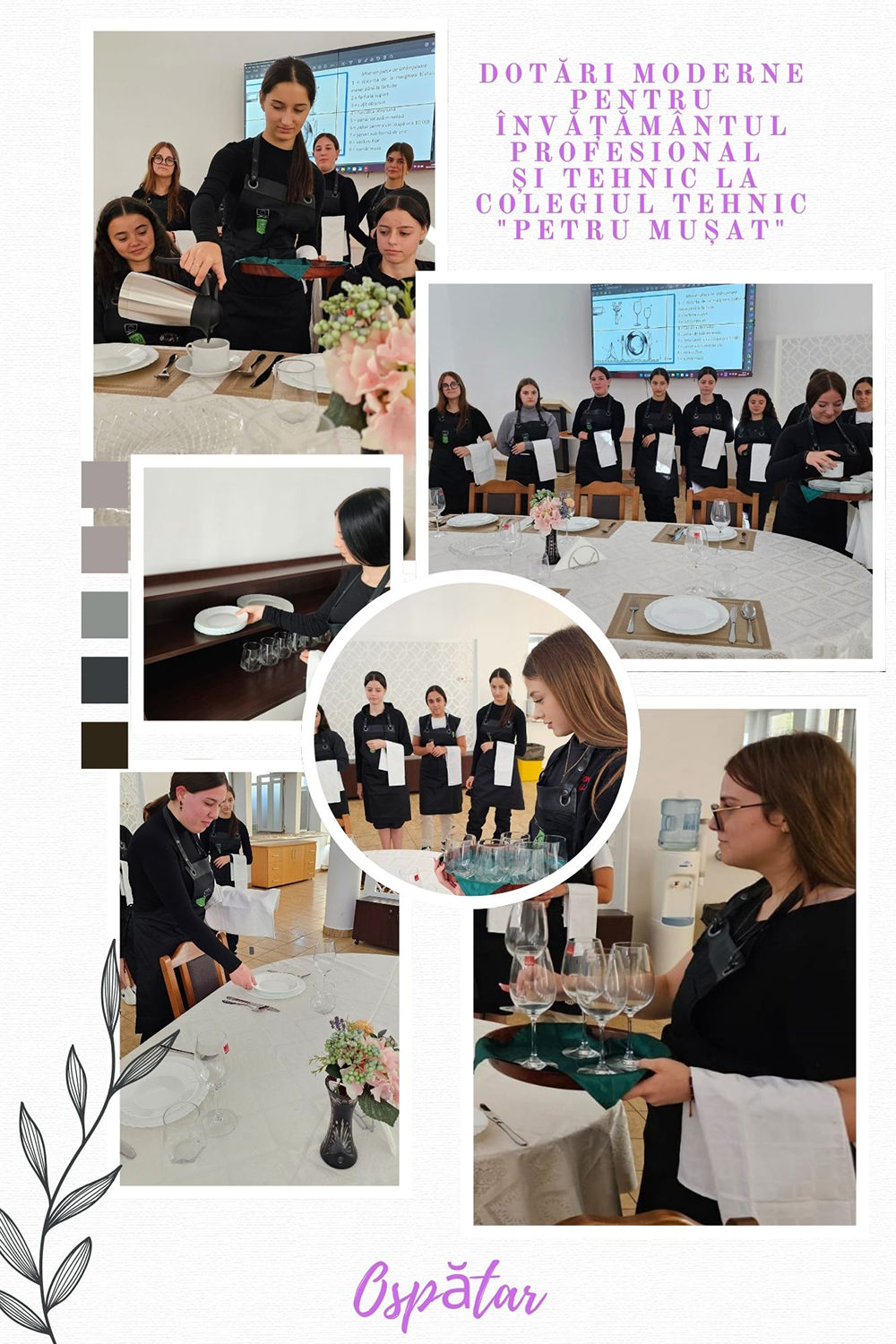 Au fost achiziționate dotările necesare și mijloacele didactice, mobilier, echipamente IT pentru dotarea unei baze de practică pentru turism și alimentație. Au fost echipate două camere de cazare tip hotel, în care elevii din domeniul turism să facă practică.