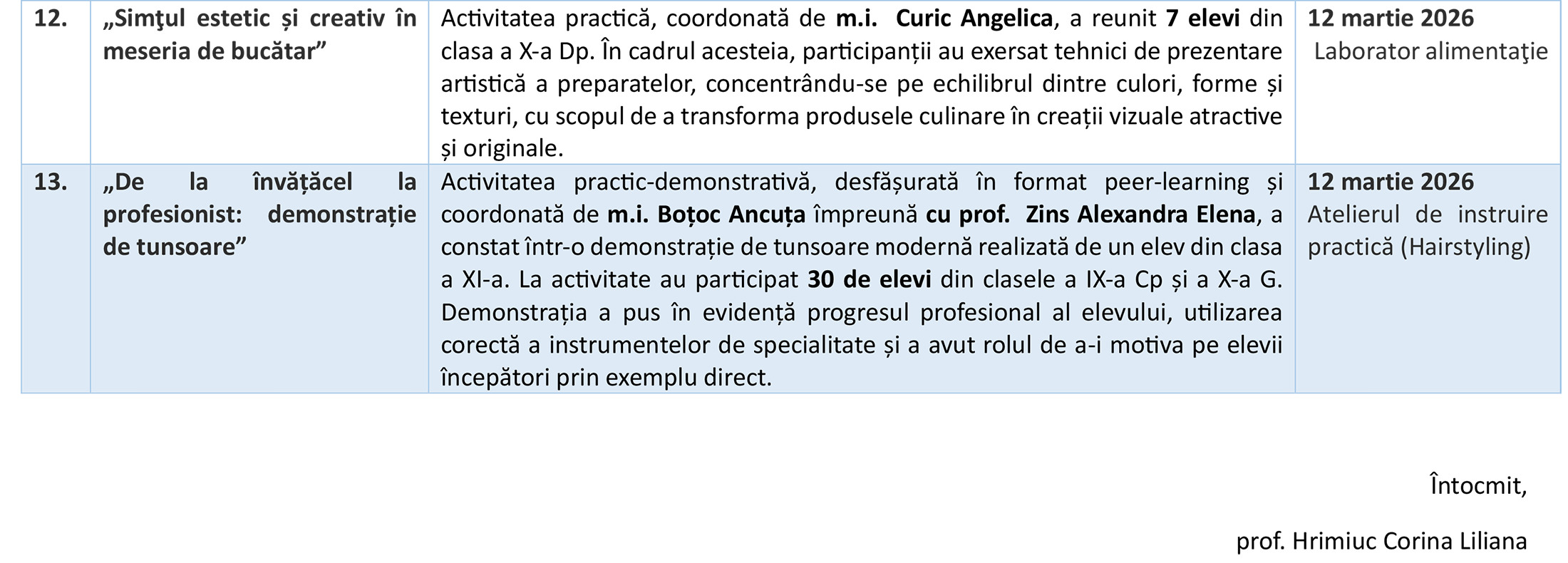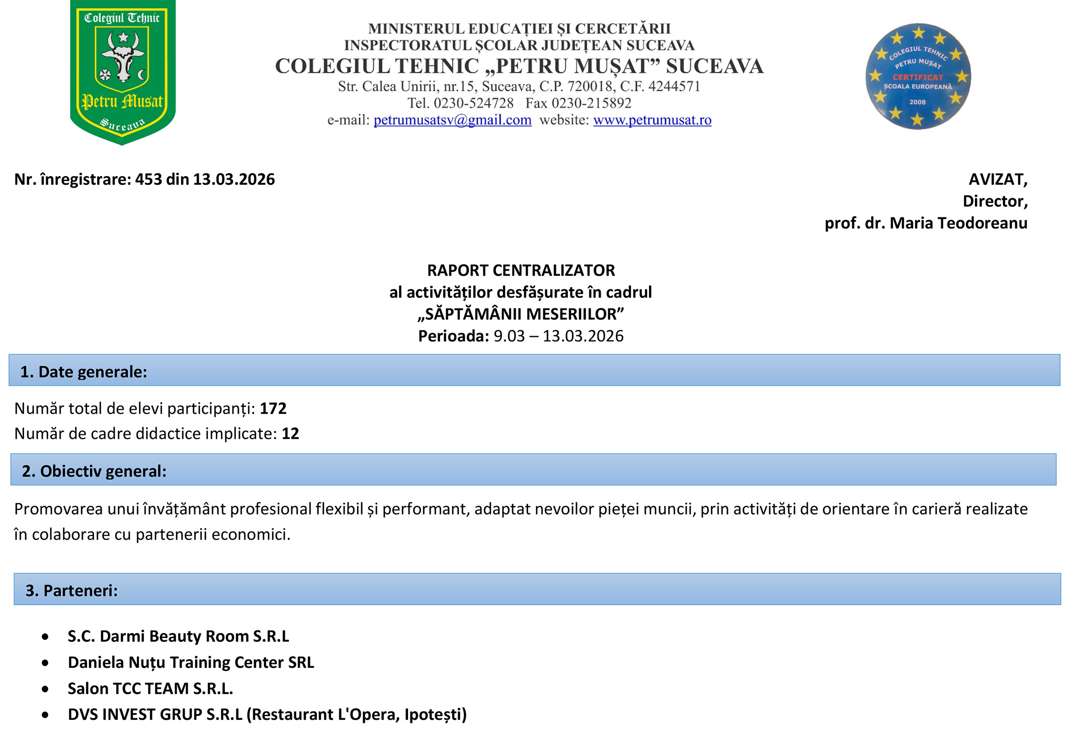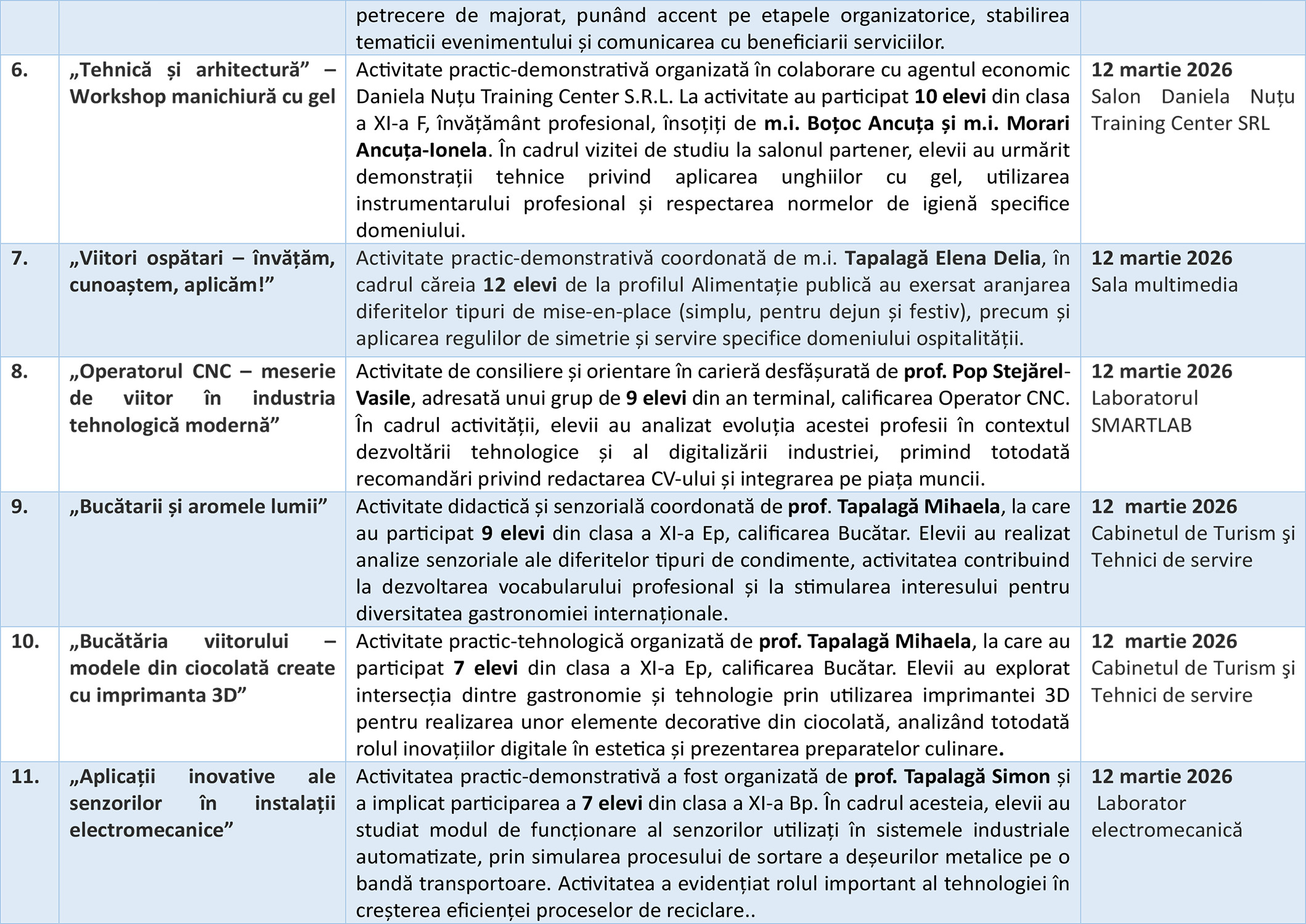Colegiul nostru a finalizat cu succes activitățile din cadrul „Săptămânii Meseriilor”, desfășurată în perioada 9–13 Martie 2026.
