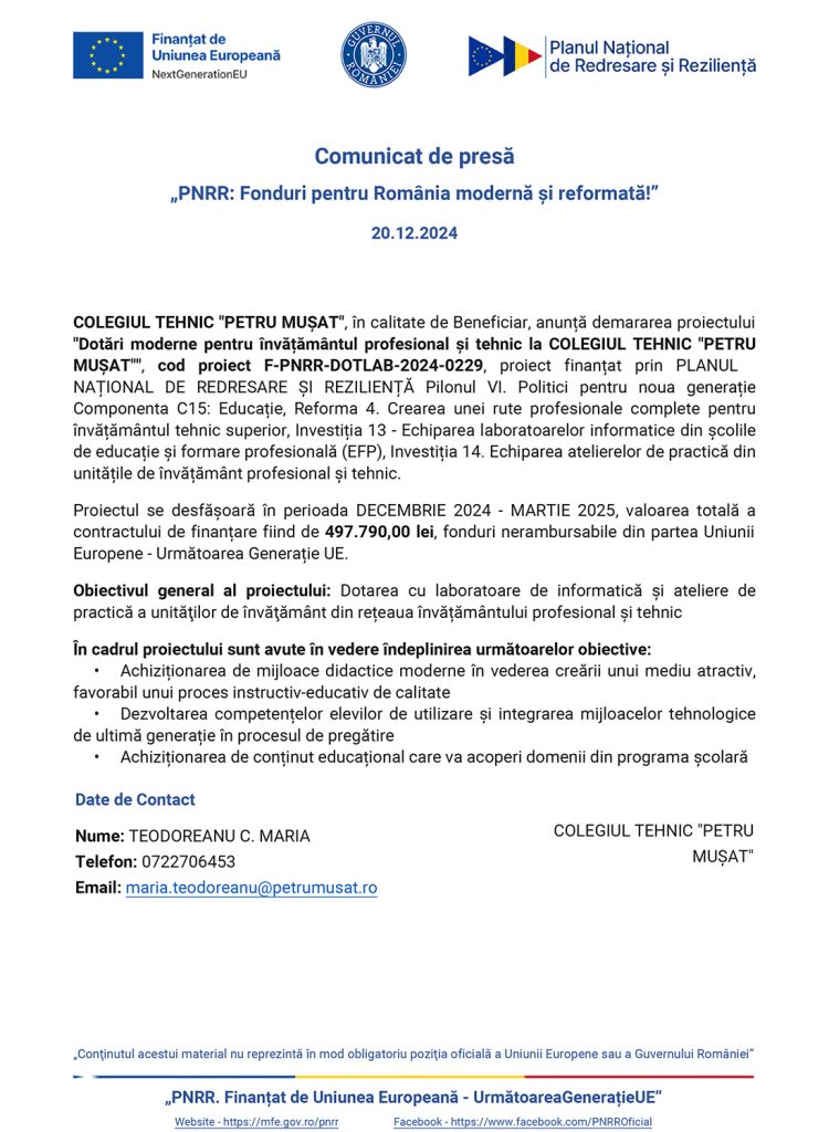 Selectează „PACTS – Parteneriat pentru Acces la Cariera Ta de Succes” – rezultatul final al probei de verificare a eligibilității administrative a concursului de recrutare și selecție de experți pentru posturile vacante.