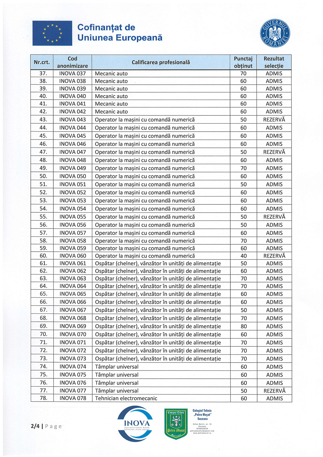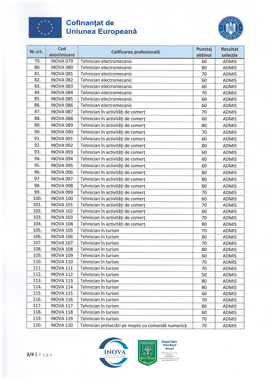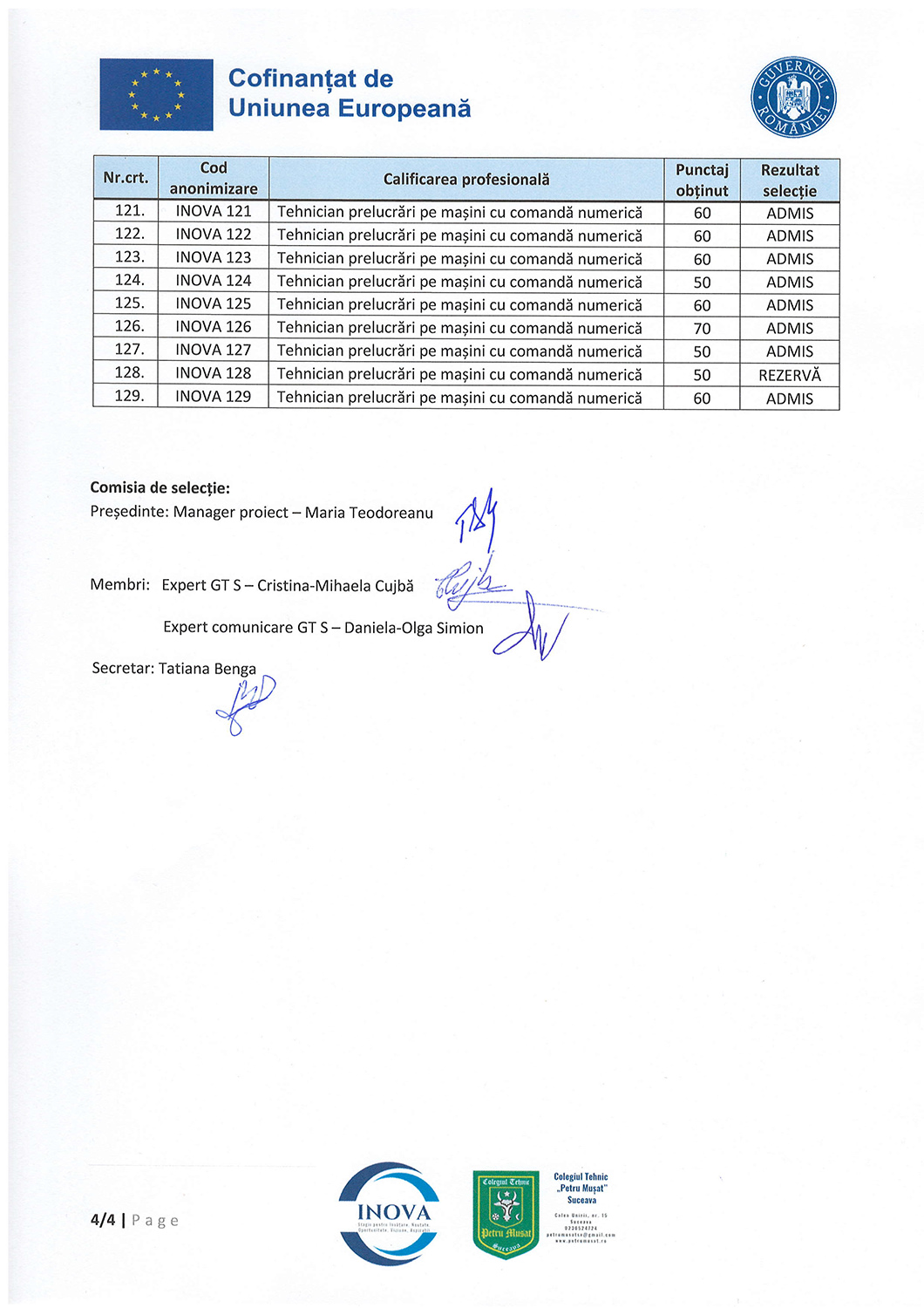 „INOVA - Stagii pentru Invățare, Noutate, Oportunitate, Viziune, Aspirați” - rezultate finale grup țintă