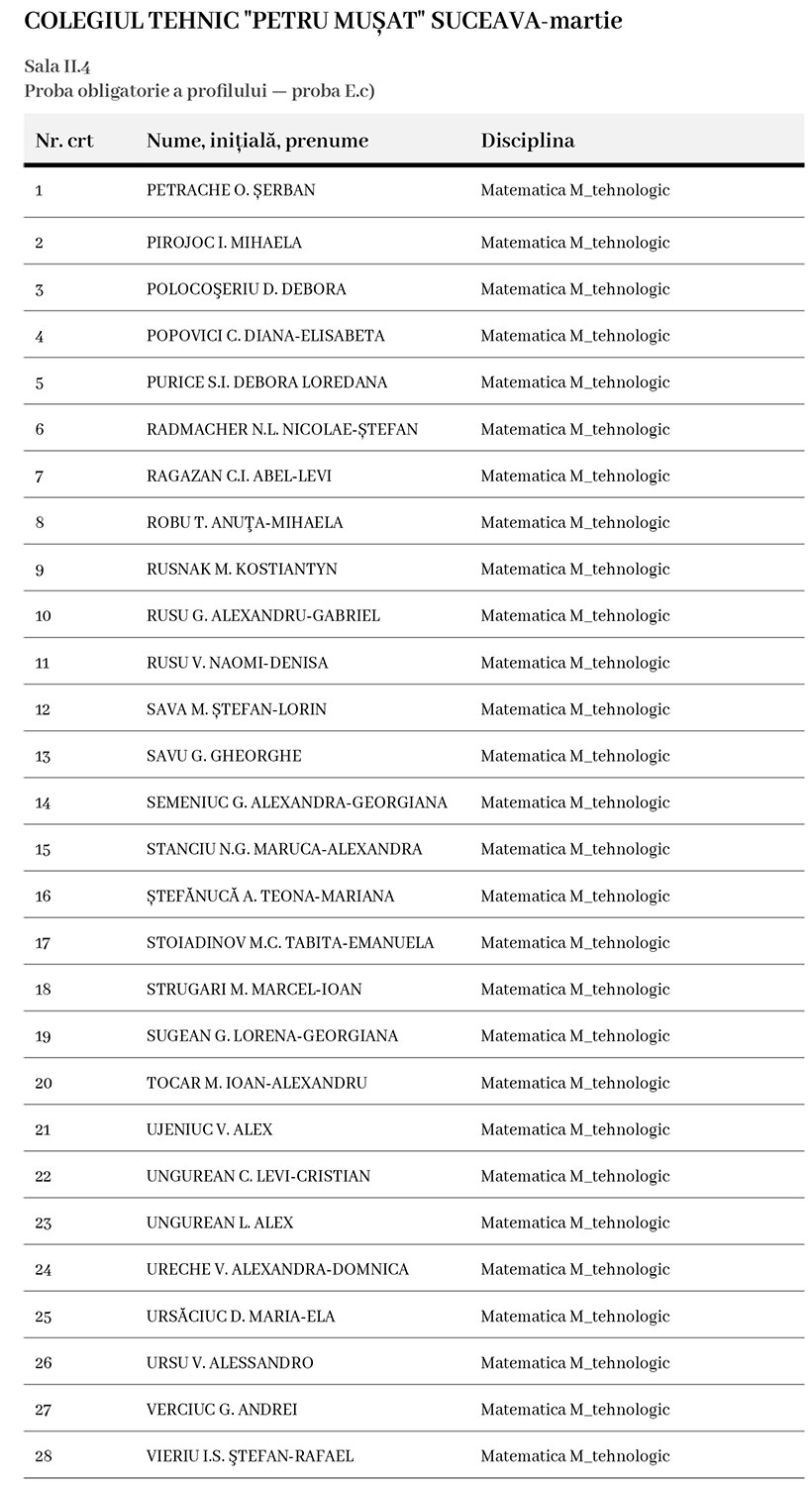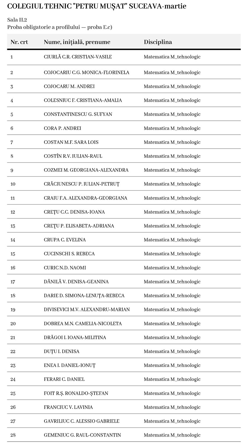 Această etapă de evaluare continuă cu proba matematică, E.c), fiind un moment esențial pentru testarea cunoștințelor acumulate și familiarizarea candidaților cu rigorile examenului maturității.
