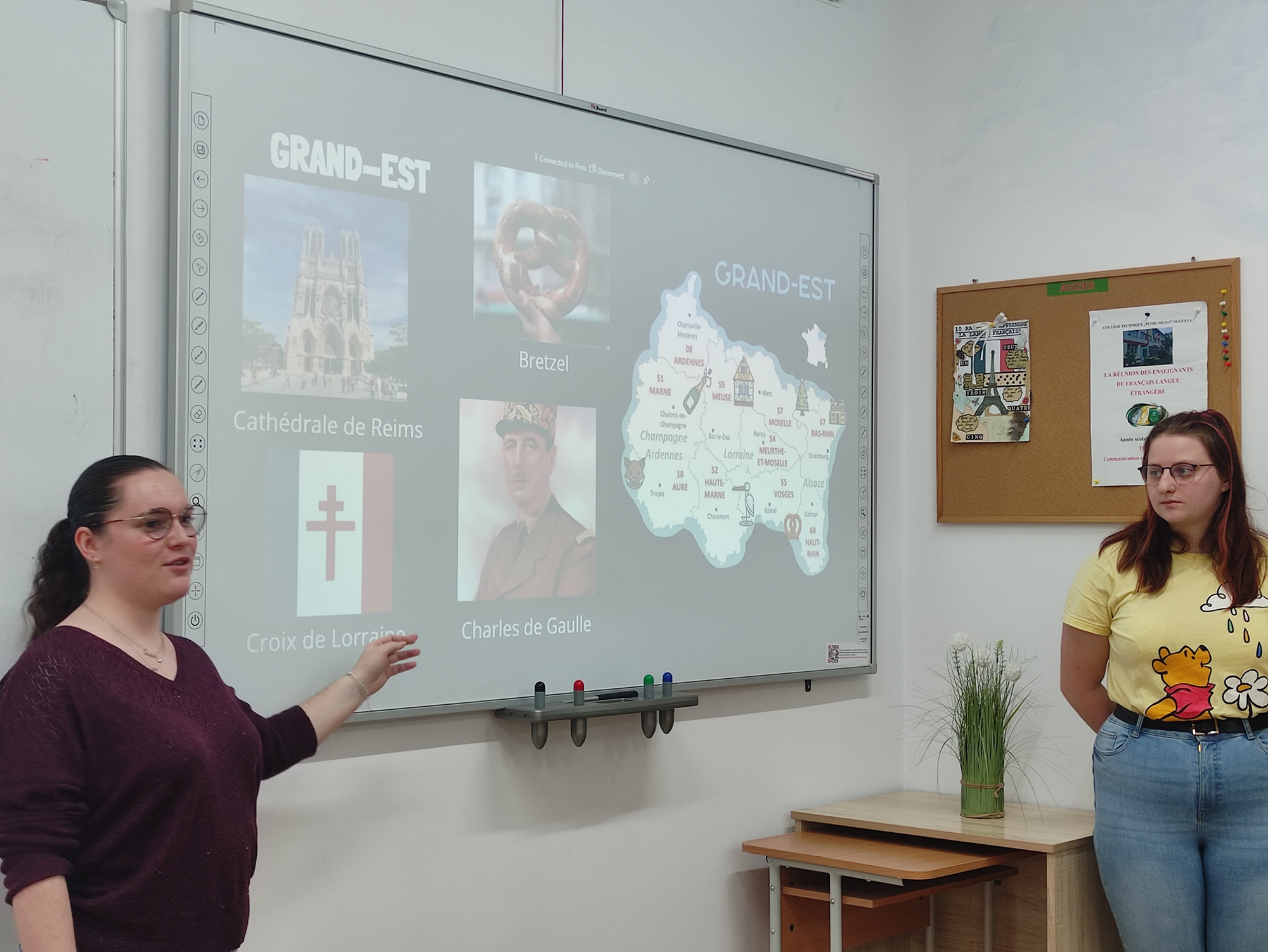 În cadrul unui amplu proiect de colaborare între Alianța Franceză din Suceava, Universitatea Ștefan cel Mare din Suceava, Inspectoratul Școlar Județean Suceava și Institutul Național Superior al Profesoratului și Educației (INSPE) – Universitatea Champagne-Ardennes din Reims, Franța, colegiul nostru a desfășurat în perioada 3-7 Februarie 2025 un stagiu de practică pedagogică în limba franceză, prilejuit de vizita a două studente în anul III la specializarea Métiers de l’enseignement, de l’éducation et de la formation, Universitatea din Reims, Faustine Leborre și Nyna Guillier.