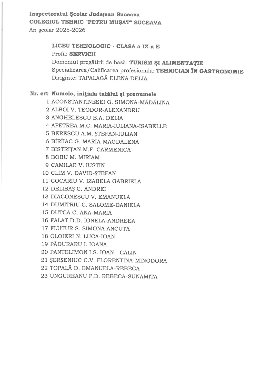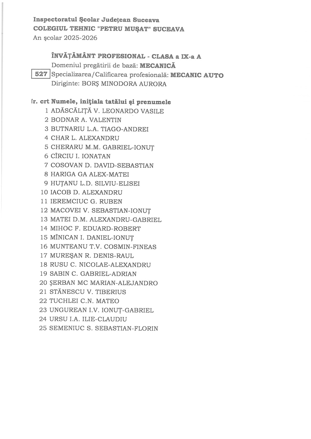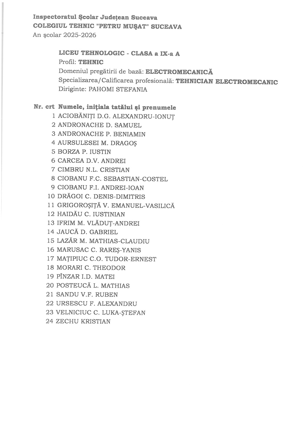 Vă așteaptă cu drag pentru a începe împreună un nou an școlar plin de reușite 5 septembrie 2025 / Noutăți / evenimente Dragi elevi, luni, 8 Septembrie 2025, la debutul unui nou an şcolar plin de provocări, sunteţi aşteptaţi în sălile de clasă. Vă dorim tuturor un an plin de realizări, descoperiri şi momente frumoase. Va aşteptăm cu drag!