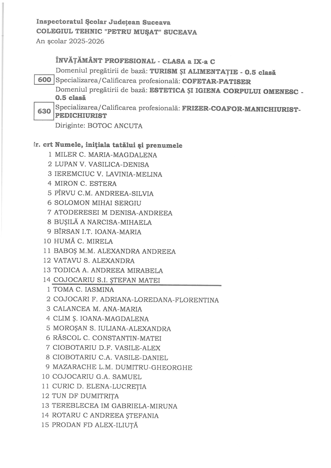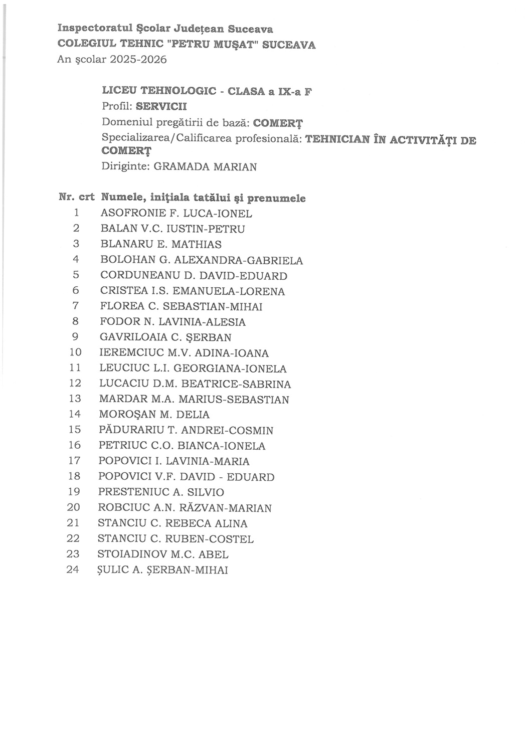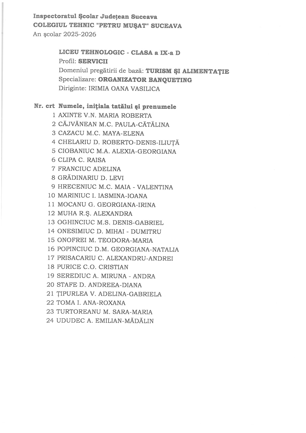 Vă așteaptă cu drag pentru a începe împreună un nou an școlar plin de reușite 5 septembrie 2025 / Noutăți / evenimente Dragi elevi, luni, 8 Septembrie 2025, la debutul unui nou an şcolar plin de provocări, sunteţi aşteptaţi în sălile de clasă. Vă dorim tuturor un an plin de realizări, descoperiri şi momente frumoase. Va aşteptăm cu drag!
